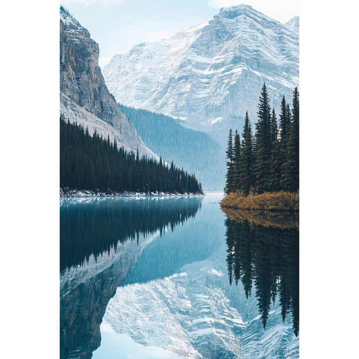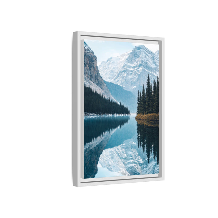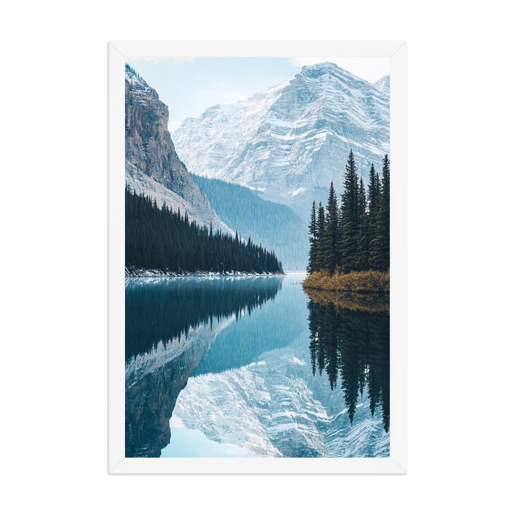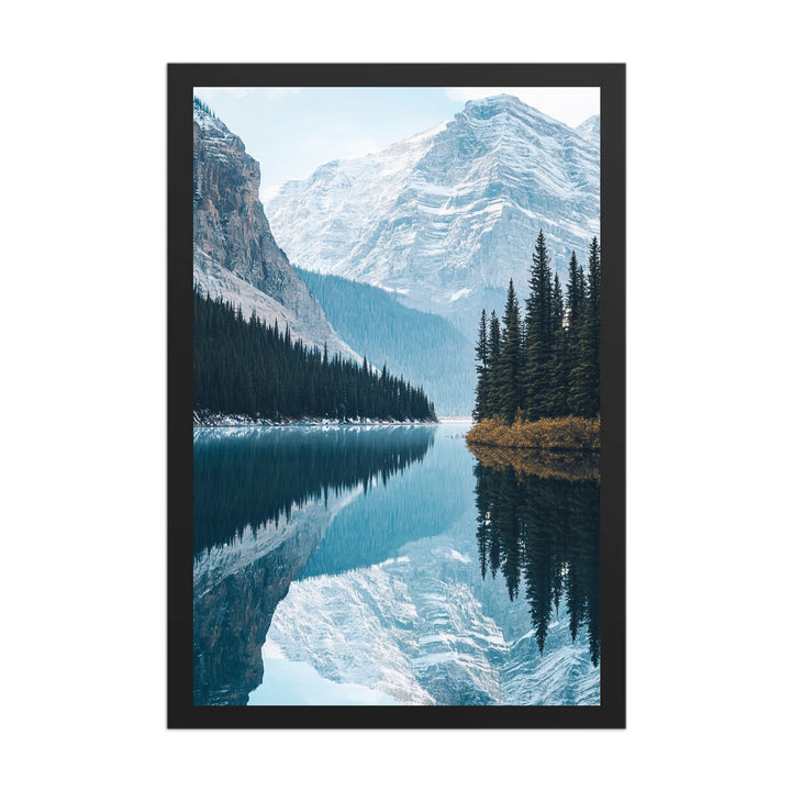 The Banff Tranquility print captures the calm majesty of Canada’s Banff National Park — mirrored peaks, crystalline water, and cool blue tones that blend nature’s strength with perfect stillness. Inspired by minimalist design and vintage travel photography, it transforms the serenity of mountain air into pure visual balance.