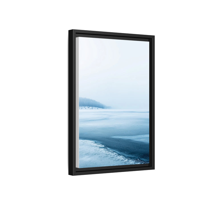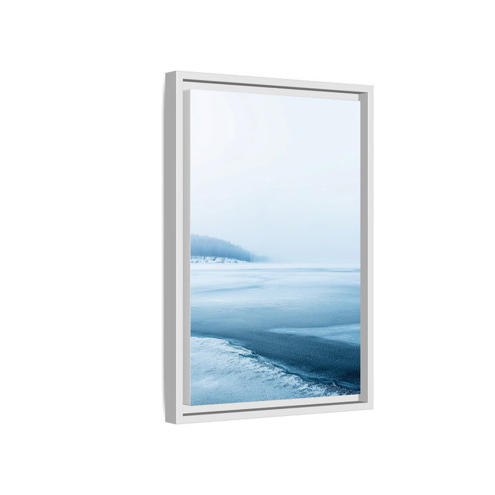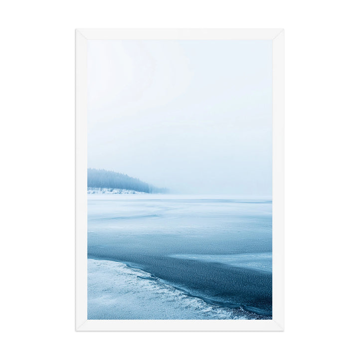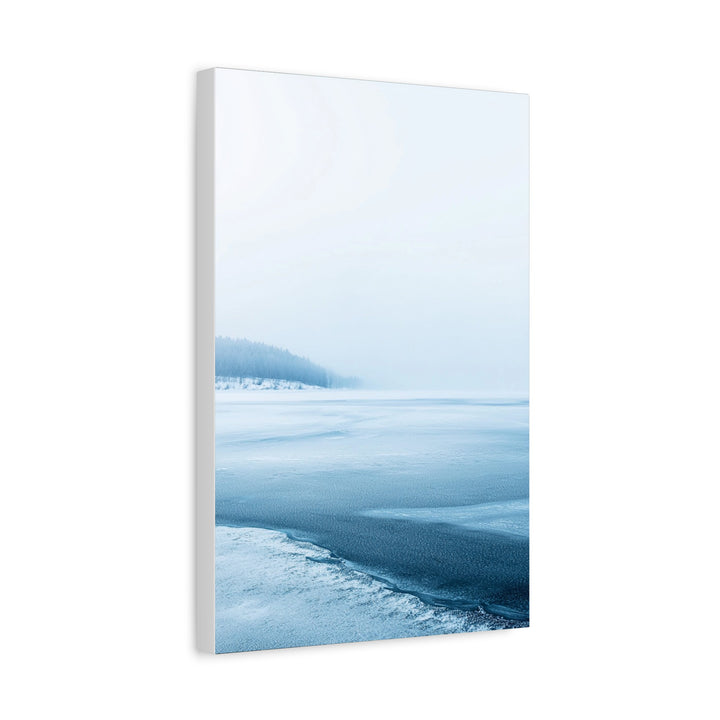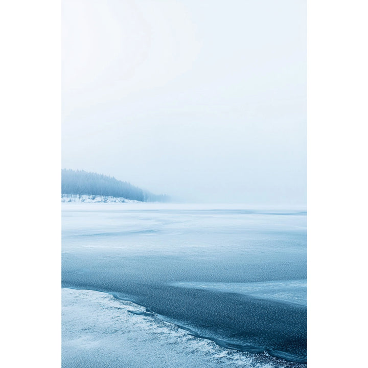 Frozen Silence captures the quiet expanse of a winter lake — its surface glazed in soft ice beneath a pale sky. Layers of cool blue and white dissolve into mist, creating a sense of distance and calm that feels both vast and intimate.