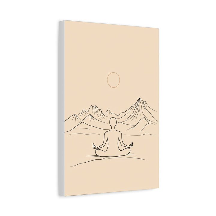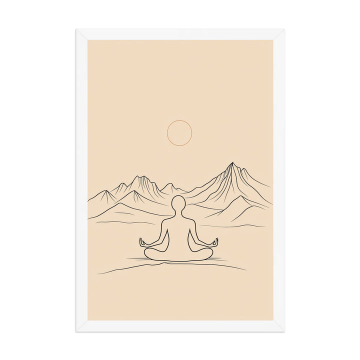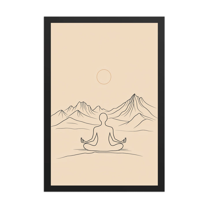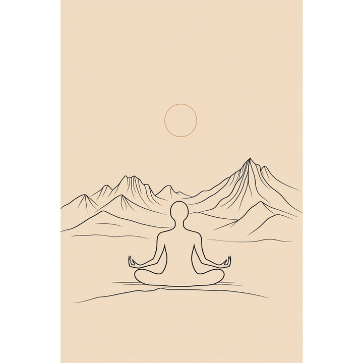 The Inner Horizon print reflects a state of calm awareness — a meditating figure drawn in simple linework beneath distant mountains, set against a warm neutral background. Its minimal form and balanced composition invite reflection, grounding, and presence.
