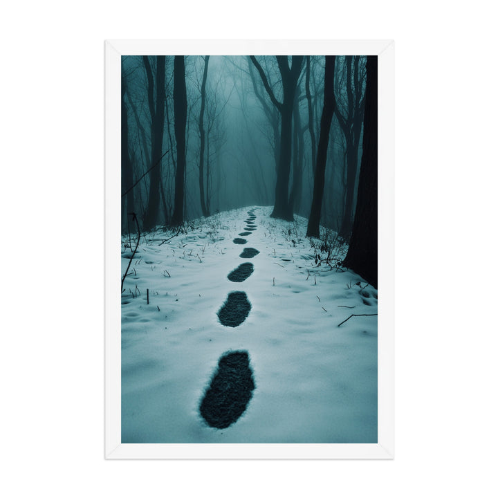 The Into the Quiet print draws the eye along a fading trail — footprints leading through mist and snow toward the unknown. Its minimalist composition, subtle gradient light, and soft grain texture evoke introspection, solitude, and the quiet beauty of impermanence.