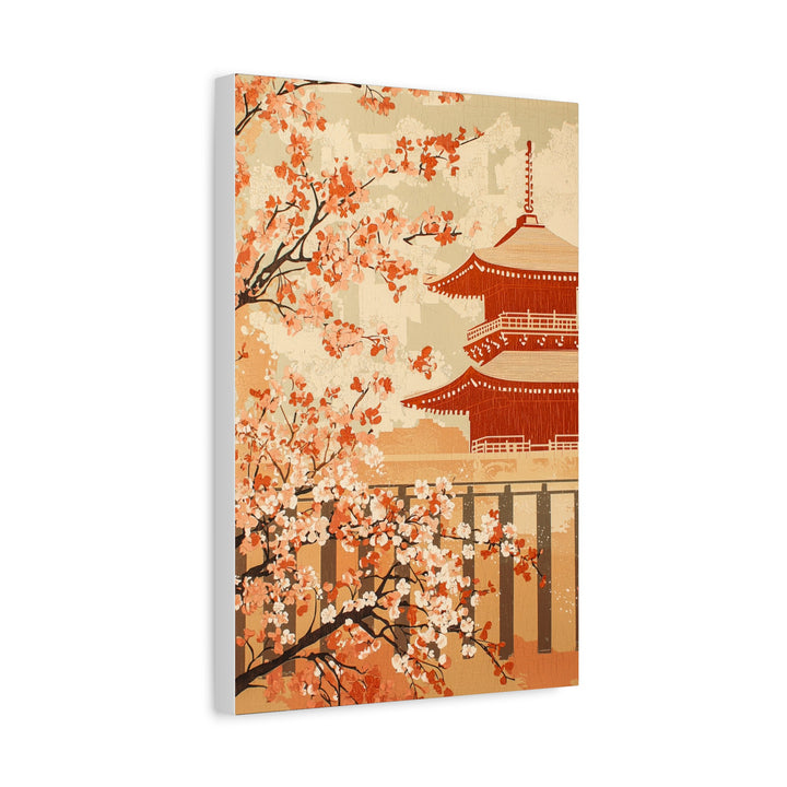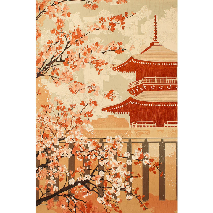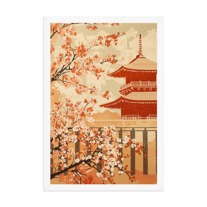 The Kyoto Blossom print captures the serene grace of Japan’s temples beneath drifting cherry blossoms — expressed through mid-century geometry and a tranquil rust-and-beige palette. The scene distills centuries of calm into a minimalist, balanced composition that feels both nostalgic and timeless.