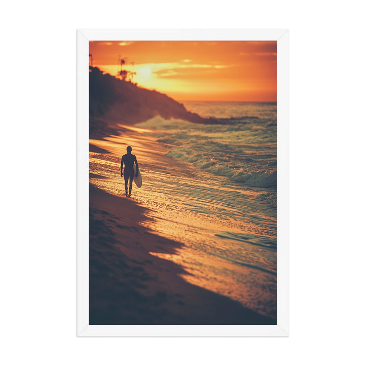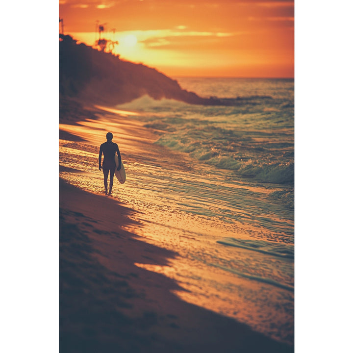 Printed on museum-grade matte paper or artist-grade canvas, this piece brings the warmth of the Pacific dusk into your home — a quiet homage to surf, sun, and the poetry of open horizons.