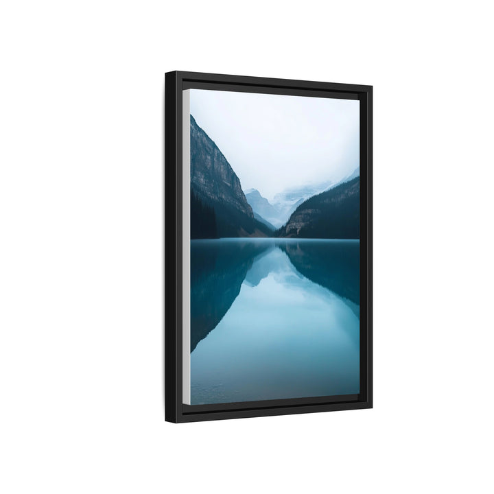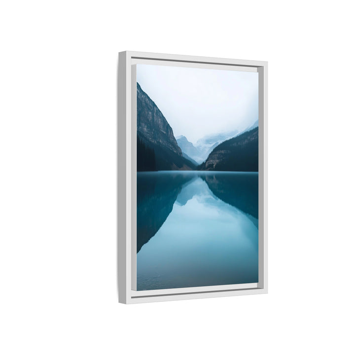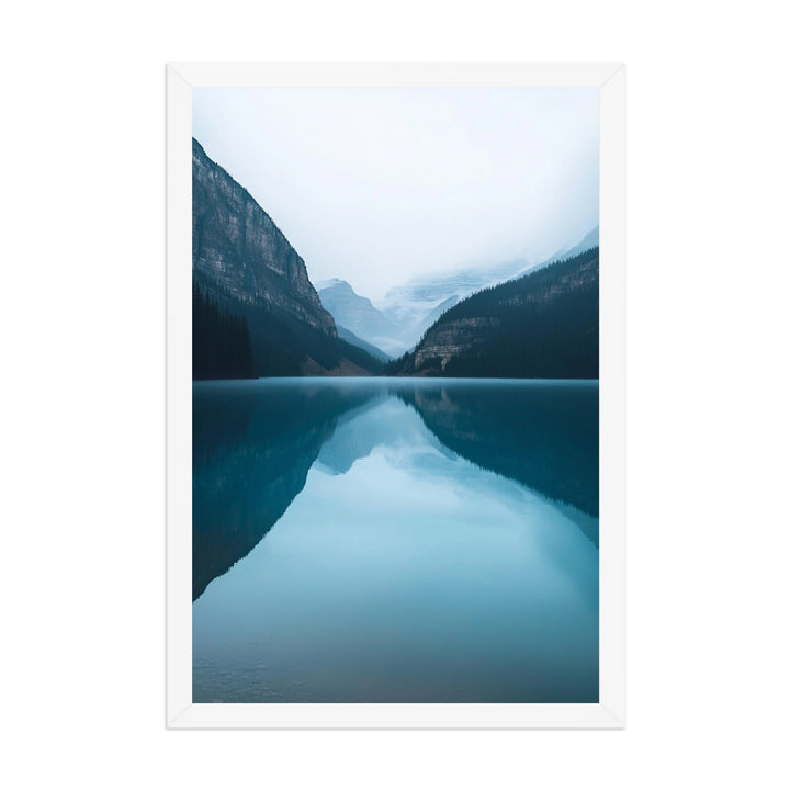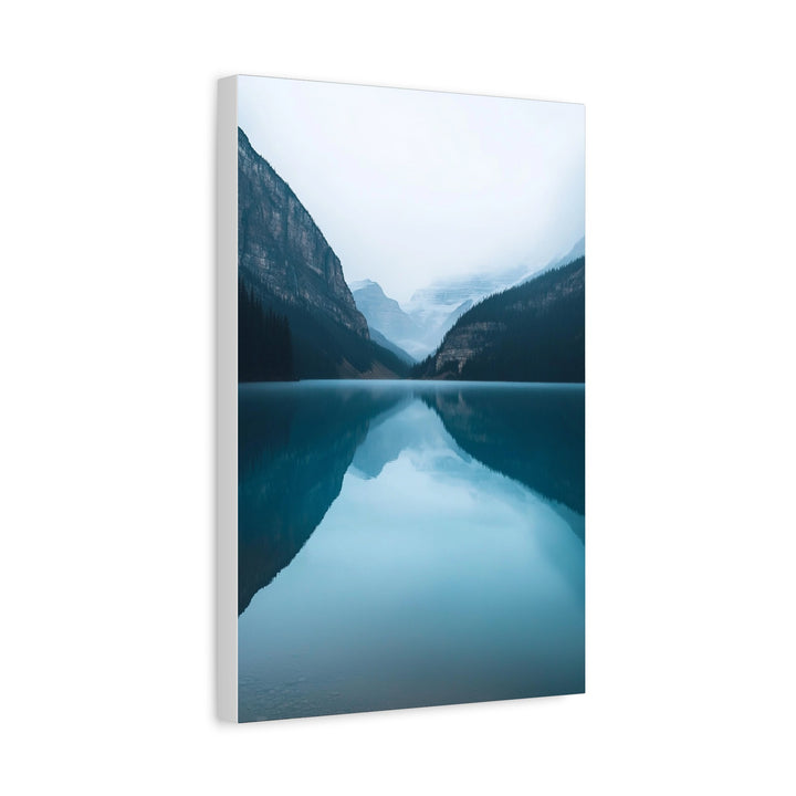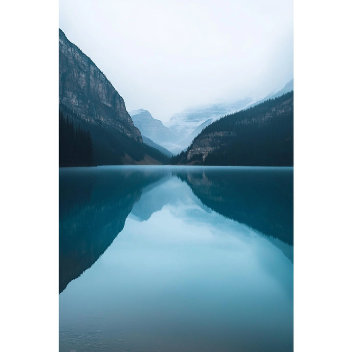 Mirror of Stillness captures the quiet perfection of a mountain lake at dawn — soft mist rising between the ridges, water and sky folding into one seamless horizon. Shades of blue and gray evoke clarity and depth, turning the landscape into a meditation on symmetry and calm.