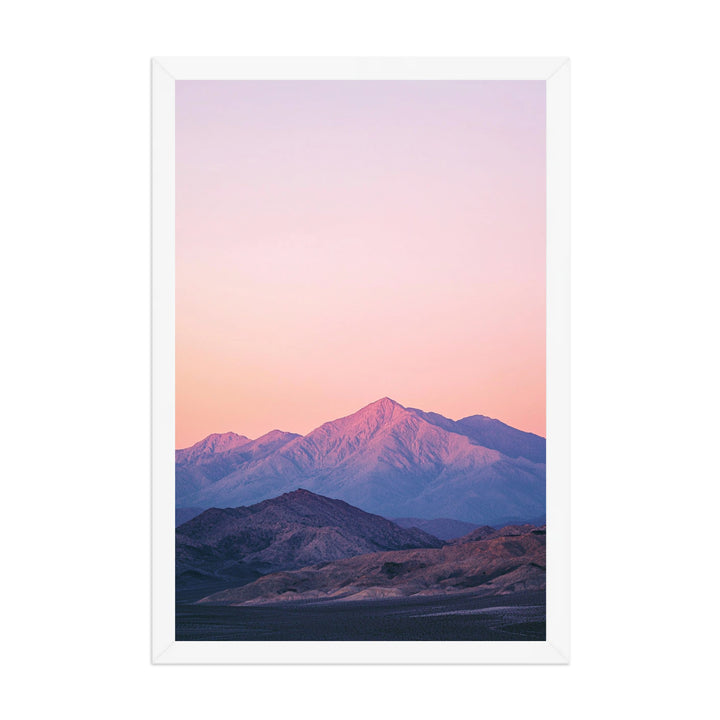 Rose Horizon captures the first light rising over distant desert mountains — soft pinks fading into lilac shadows beneath a sky washed in quiet calm. The composition’s gentle gradient and open expanse evoke serenity, warmth, and the still rhythm of morning.