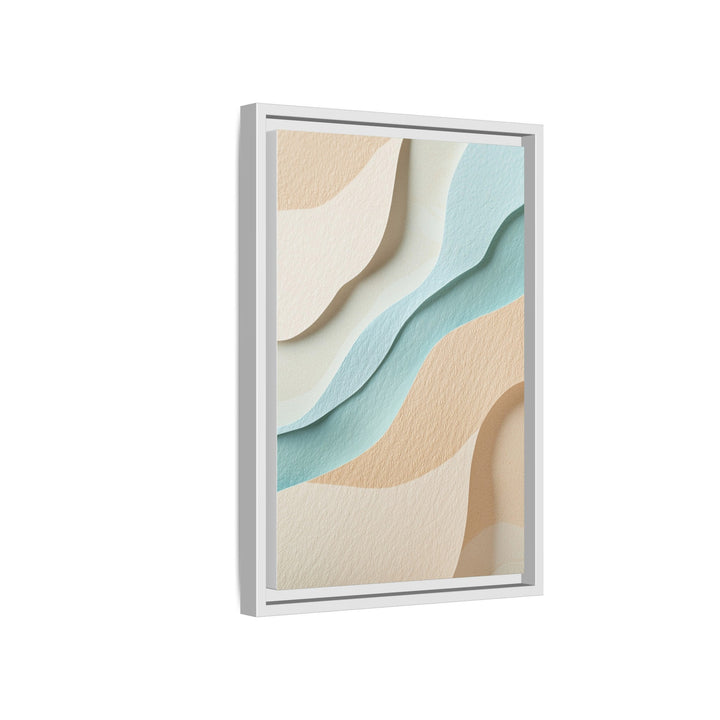 Shoreline Flow captures the quiet dialogue between sand and sea — layered textures curving like waves across warm beige and soft aqua tones. The composition feels tactile and fluid, evoking balance, movement, and the calm energy of nature’s design.