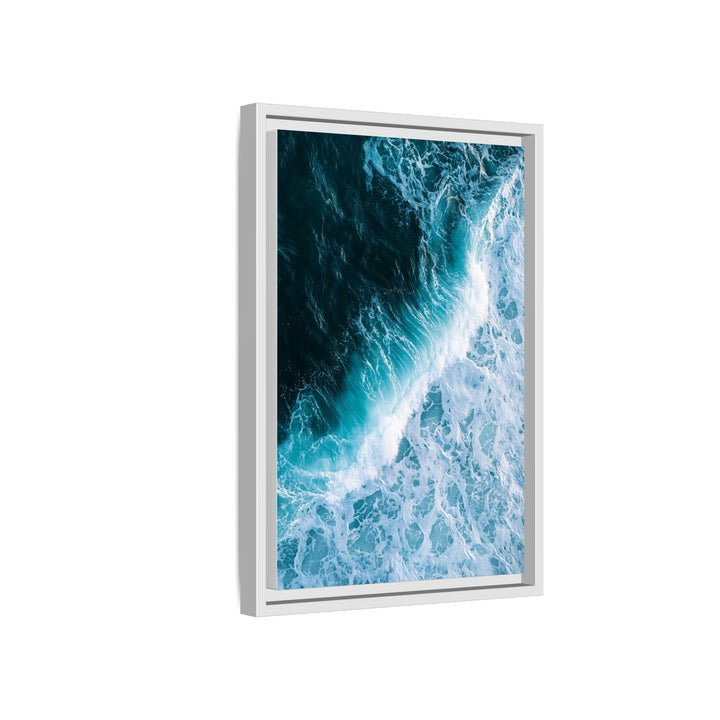 Tidal Flow captures the ever-changing surface of the sea — waves folding into one another, light tracing ribbons of turquoise and white across deep water. The aerial perspective transforms movement into pattern, power into rhythm, revealing the ocean as both energy and calm.