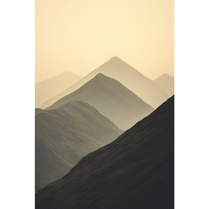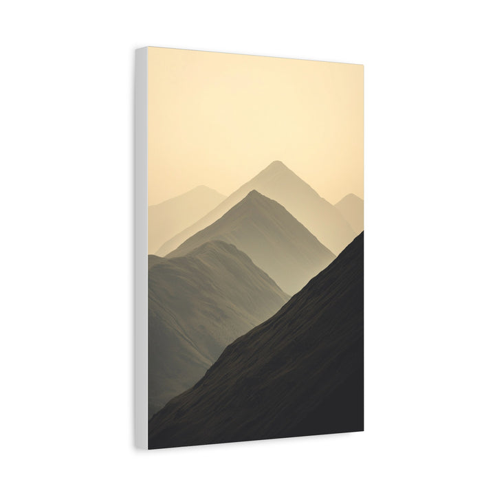 Veil of Peaks captures the quiet rhythm of distant mountains fading into golden haze — a minimalist study of form, depth, and calm. Soft neutral layers unfold like whispers of light and shadow, evoking the serenity of untouched landscapes and the passage of time.