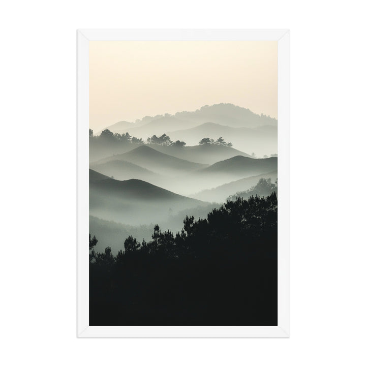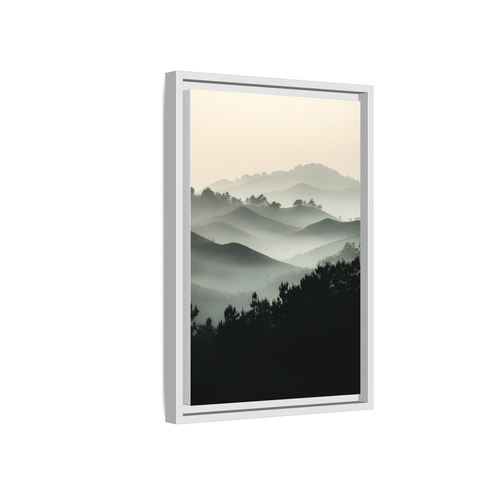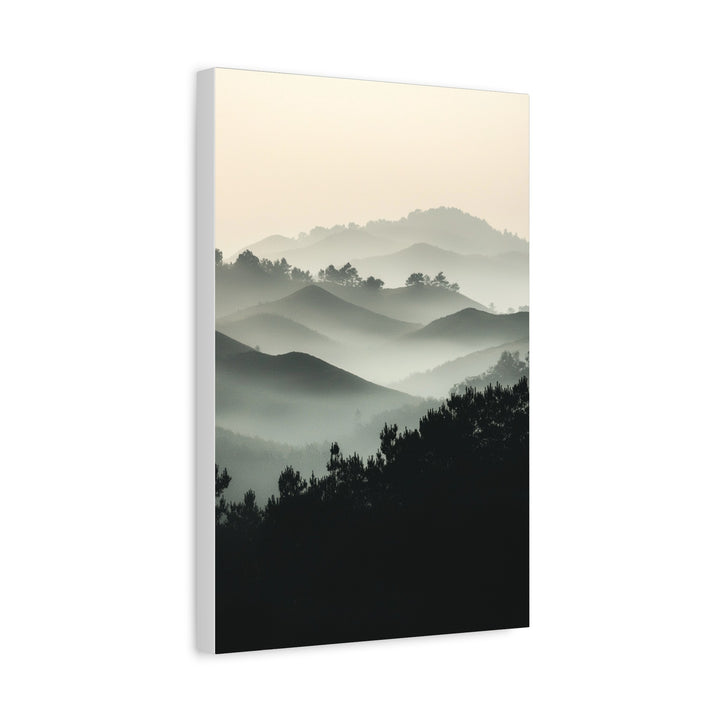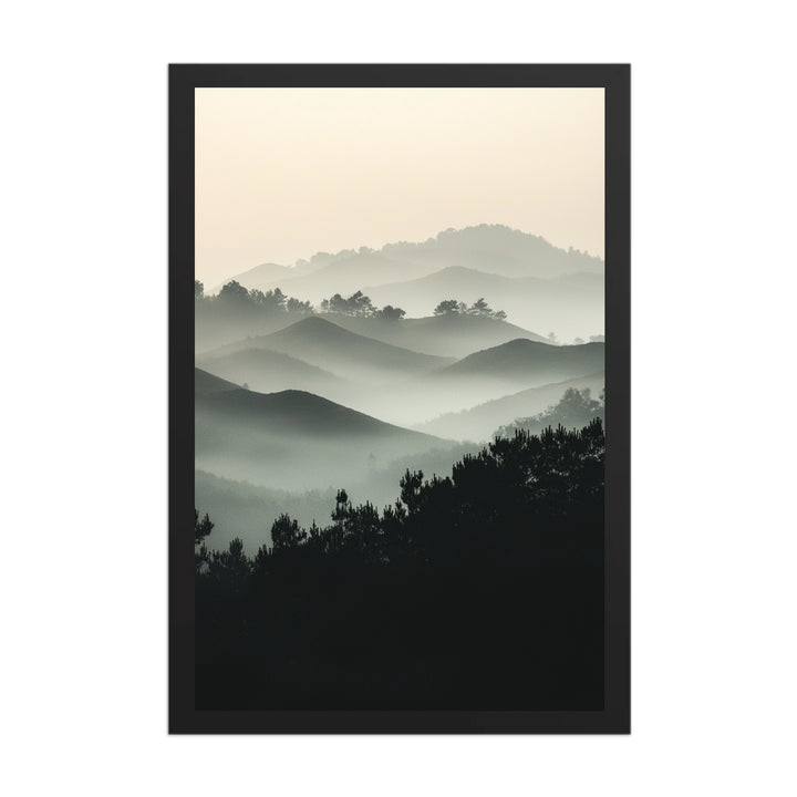 Whispered Hills captures the quiet rhythm of rolling landscapes veiled in morning fog — each ridge dissolving softly into the next. Gentle tones of gray and green create a sense of depth and tranquility, turning the natural horizon into a study of calm and flow.